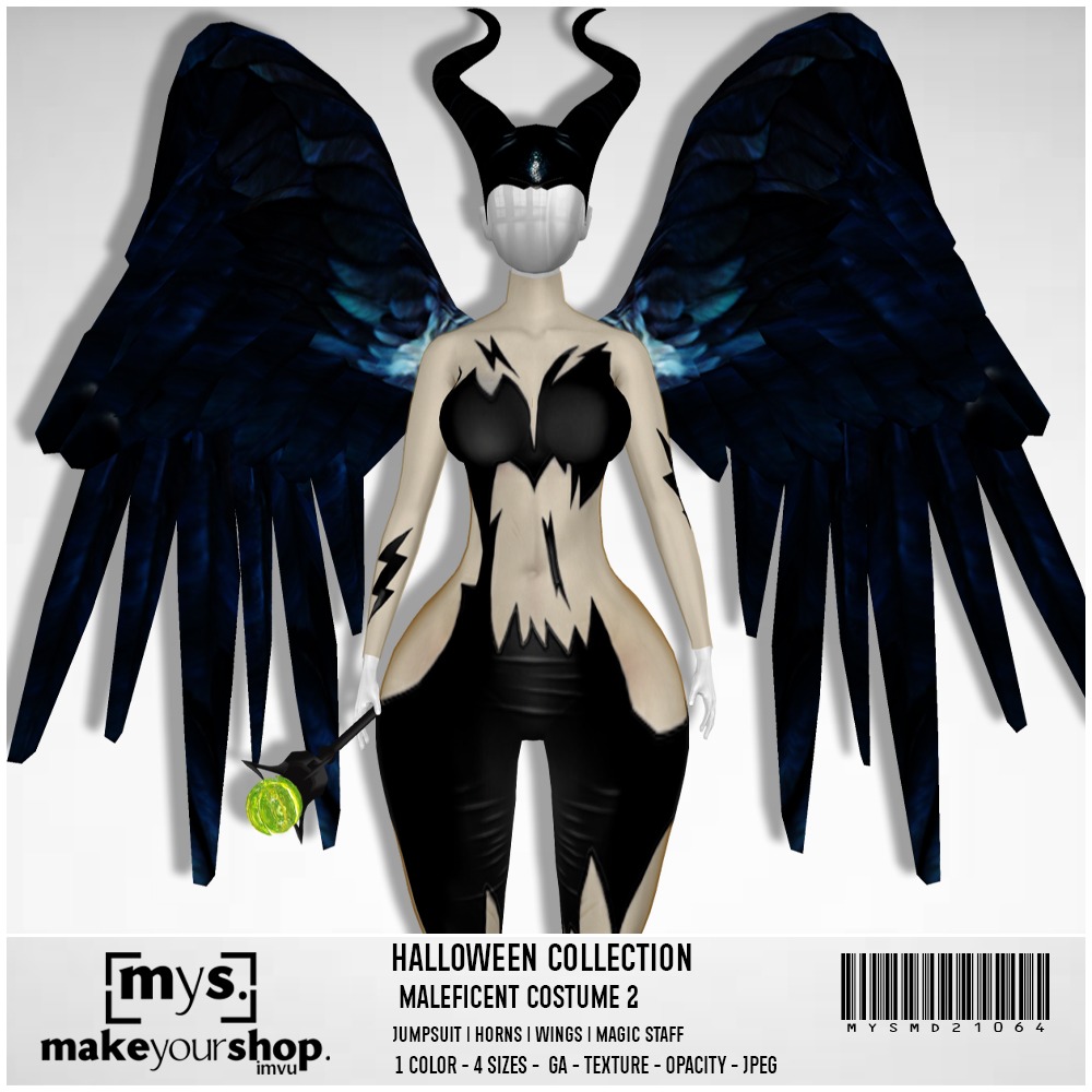 MALEFICENT: Jumpsuit, horns, wings, magic staff